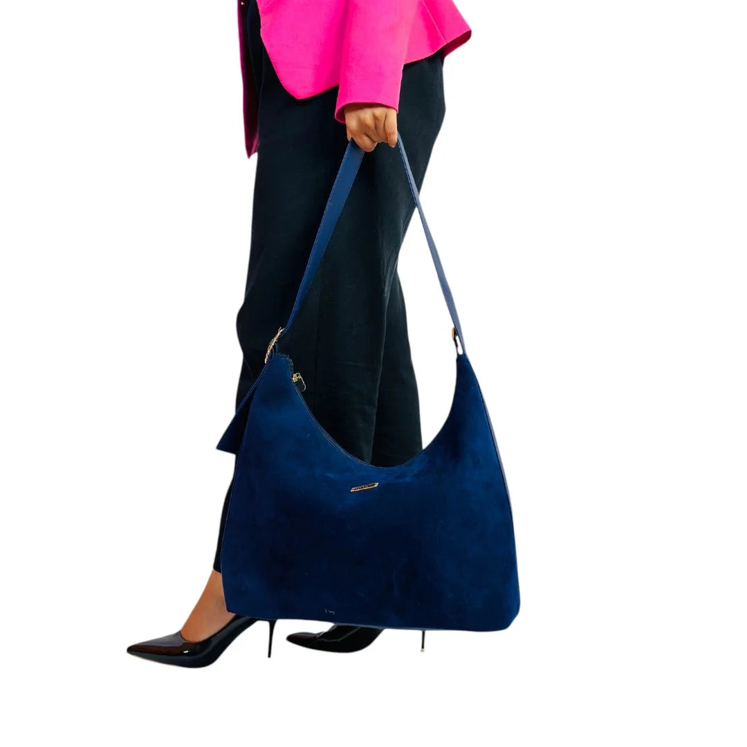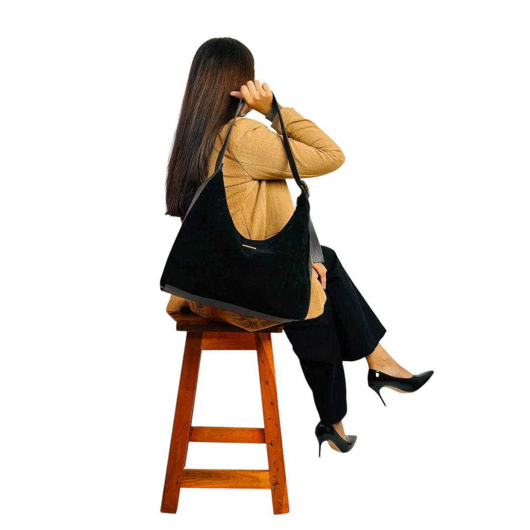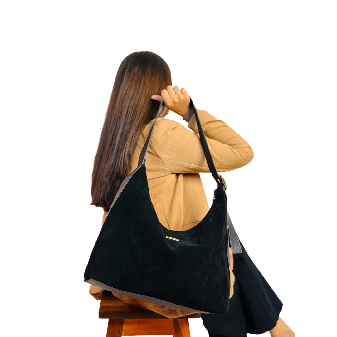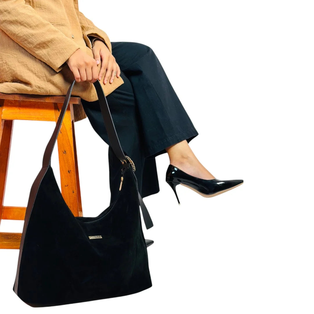 A softly structured suede tote designed with a relaxed silhouette and clean lines. Lightweight yet spacious, it offers an effortless blend of texture, comfort, and everyday elegance.