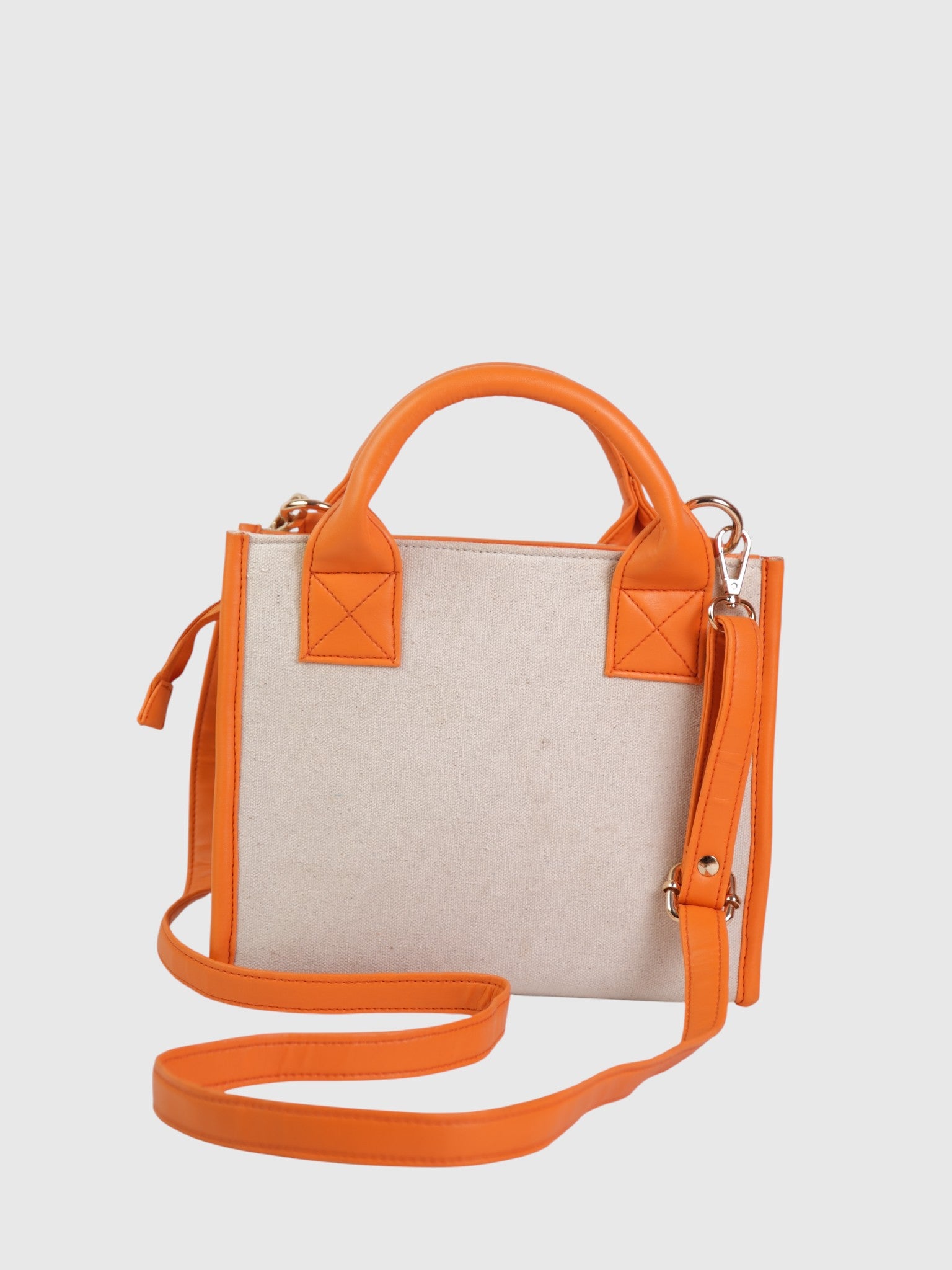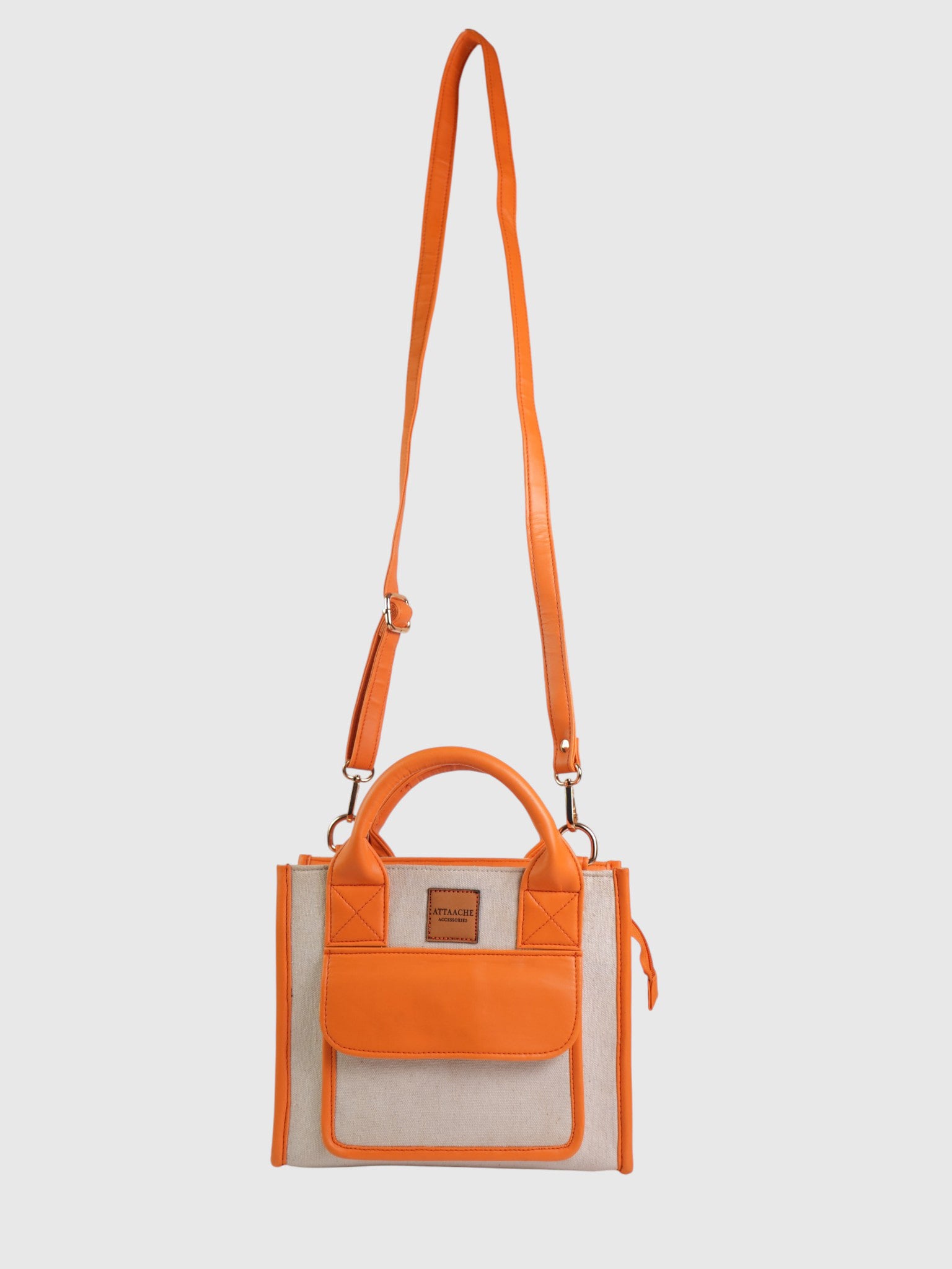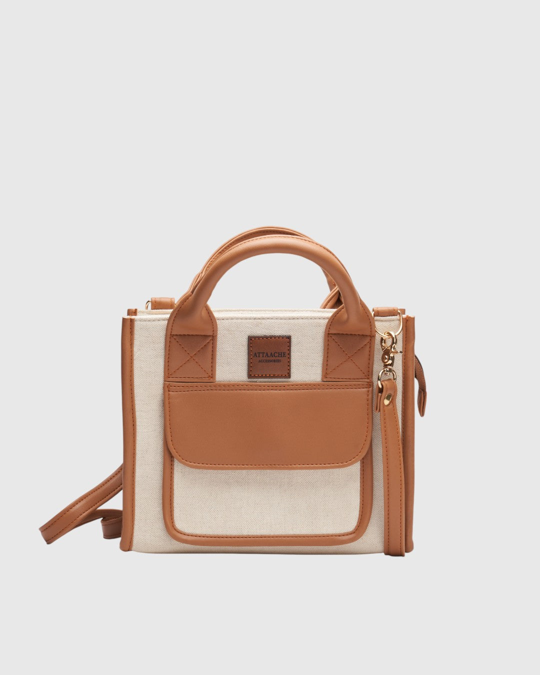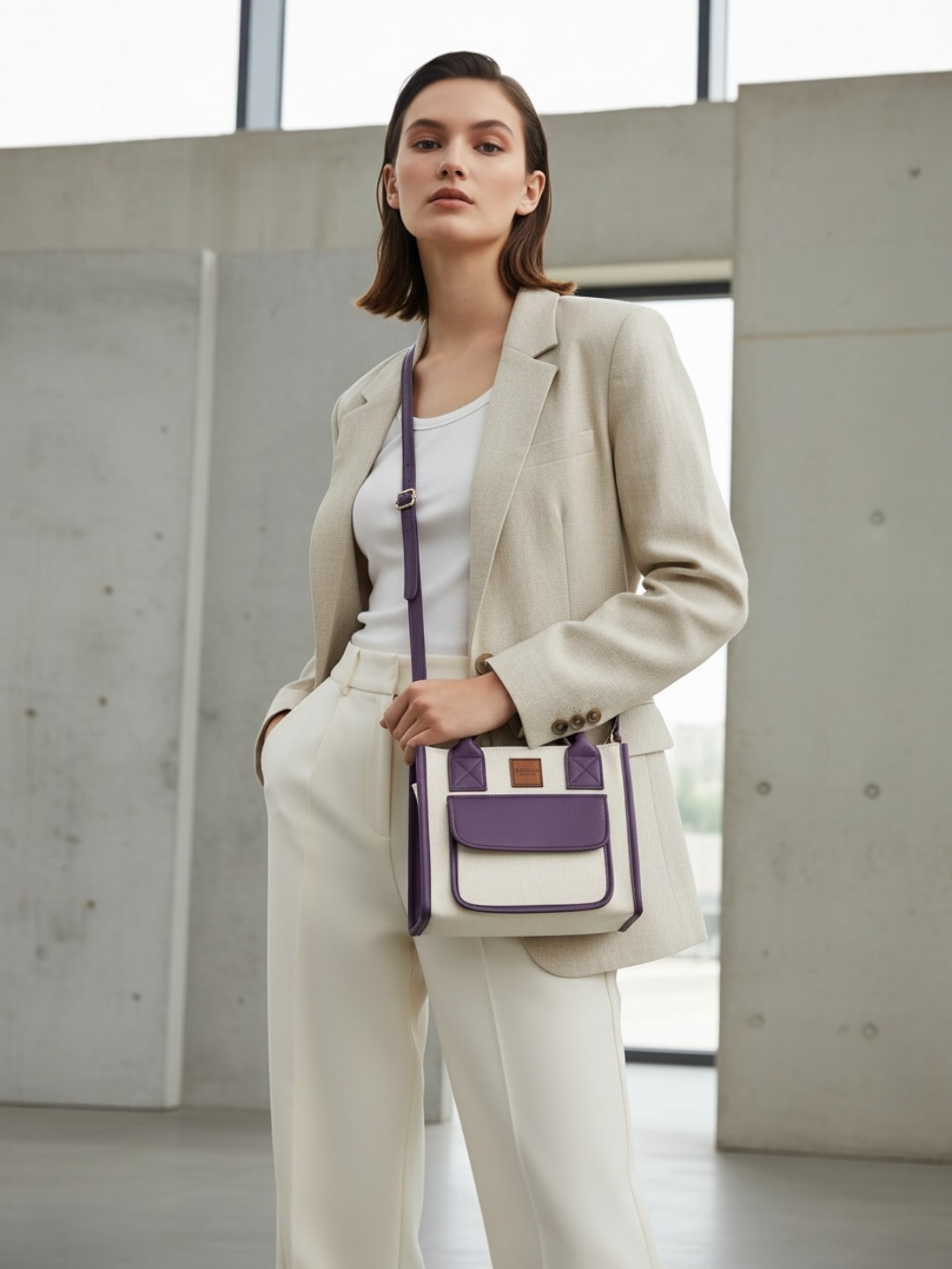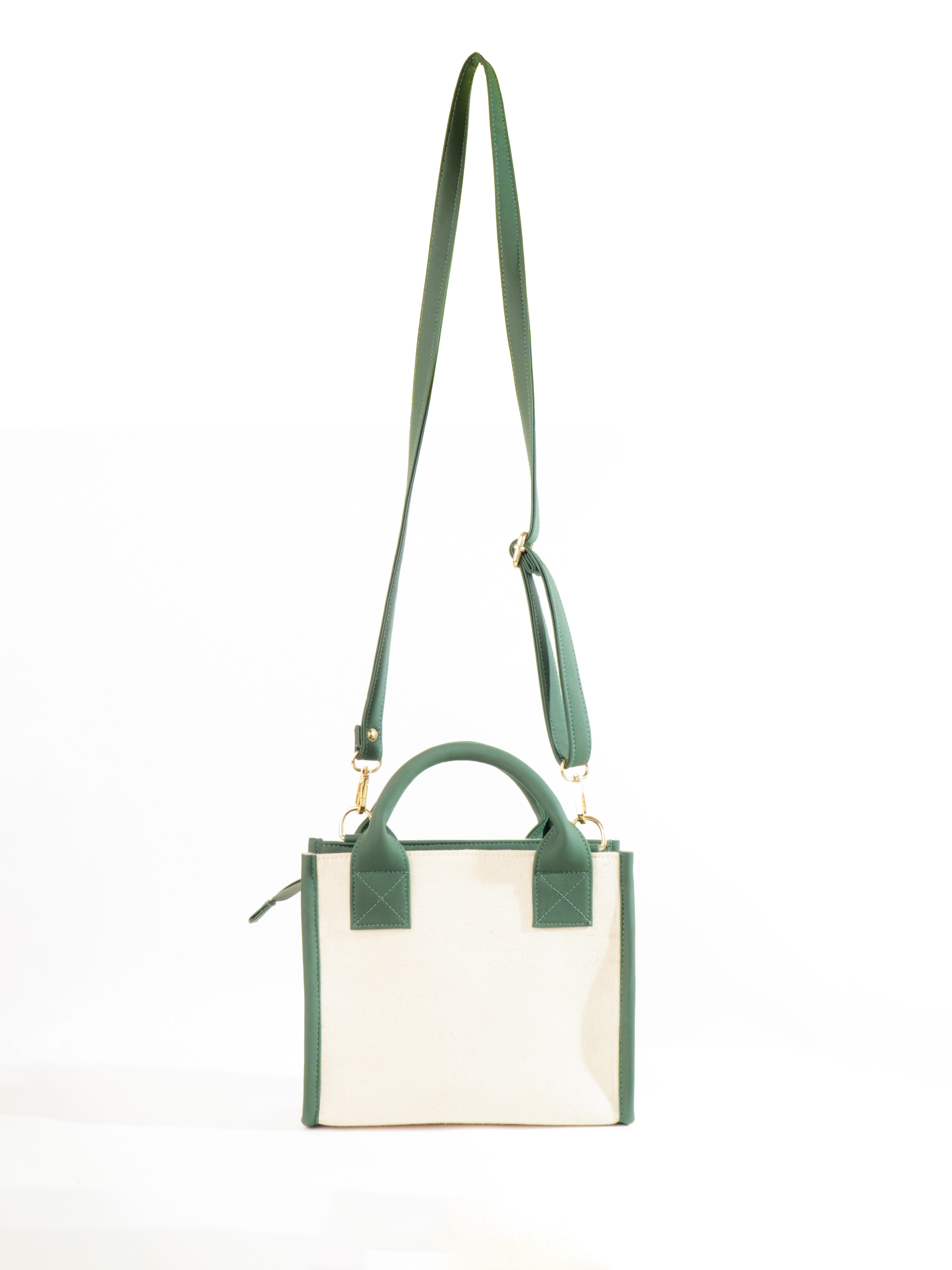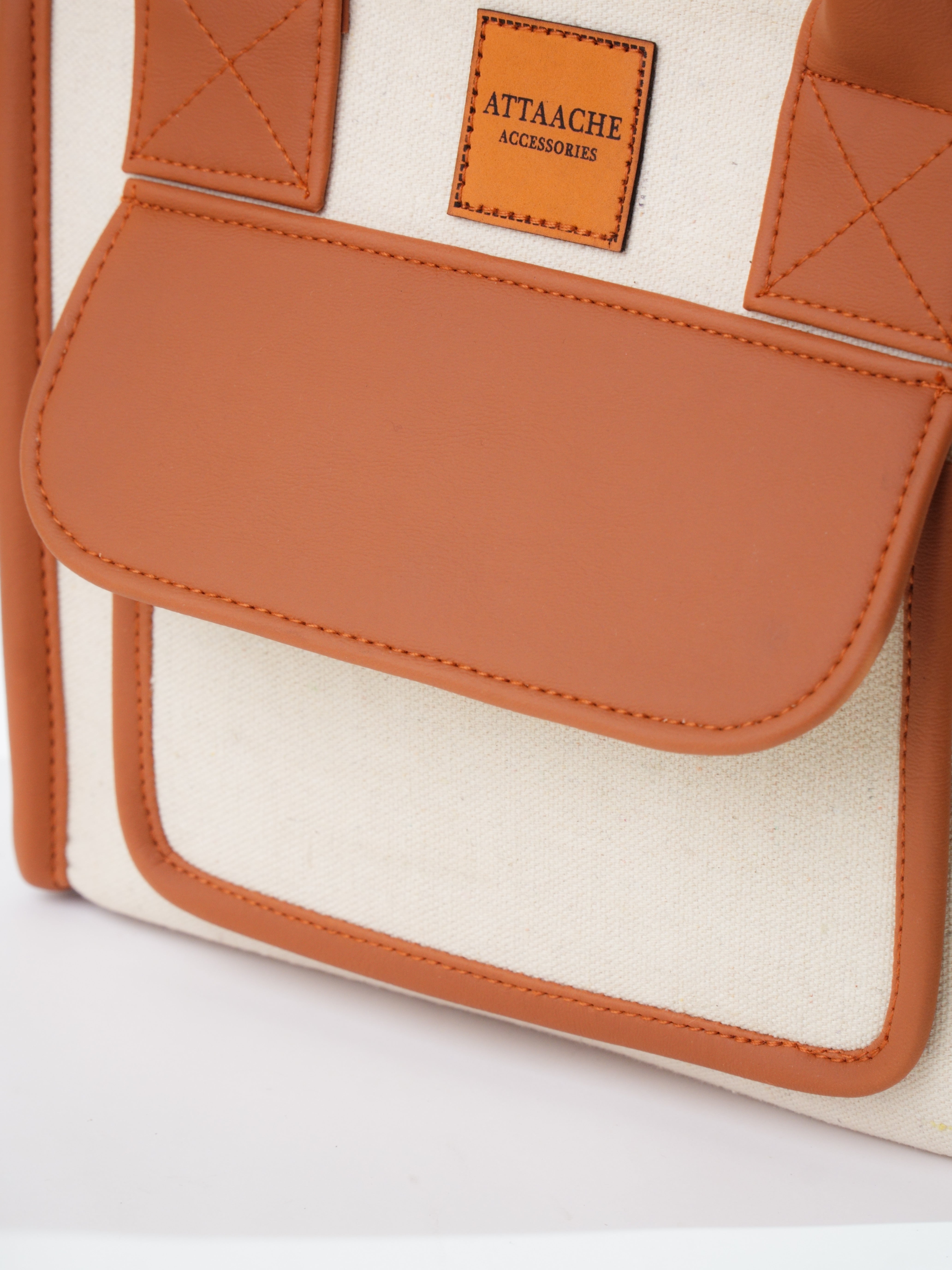 A structured everyday bag crafted with a durable canvas body and smooth vegan leather accents. Designed for functionality and clean aesthetics, it features a compact silhouette with practical pockets and versatile carry options.