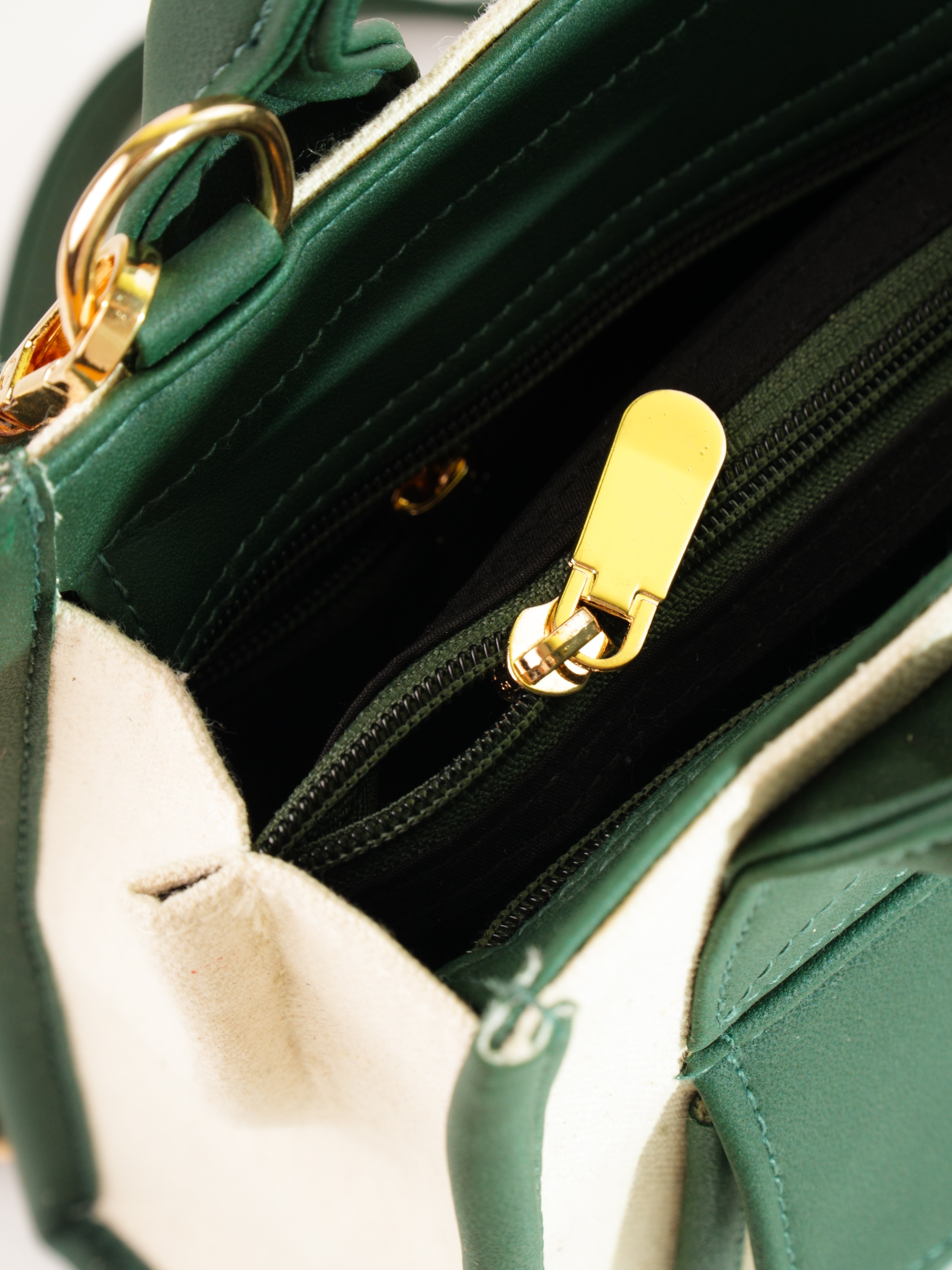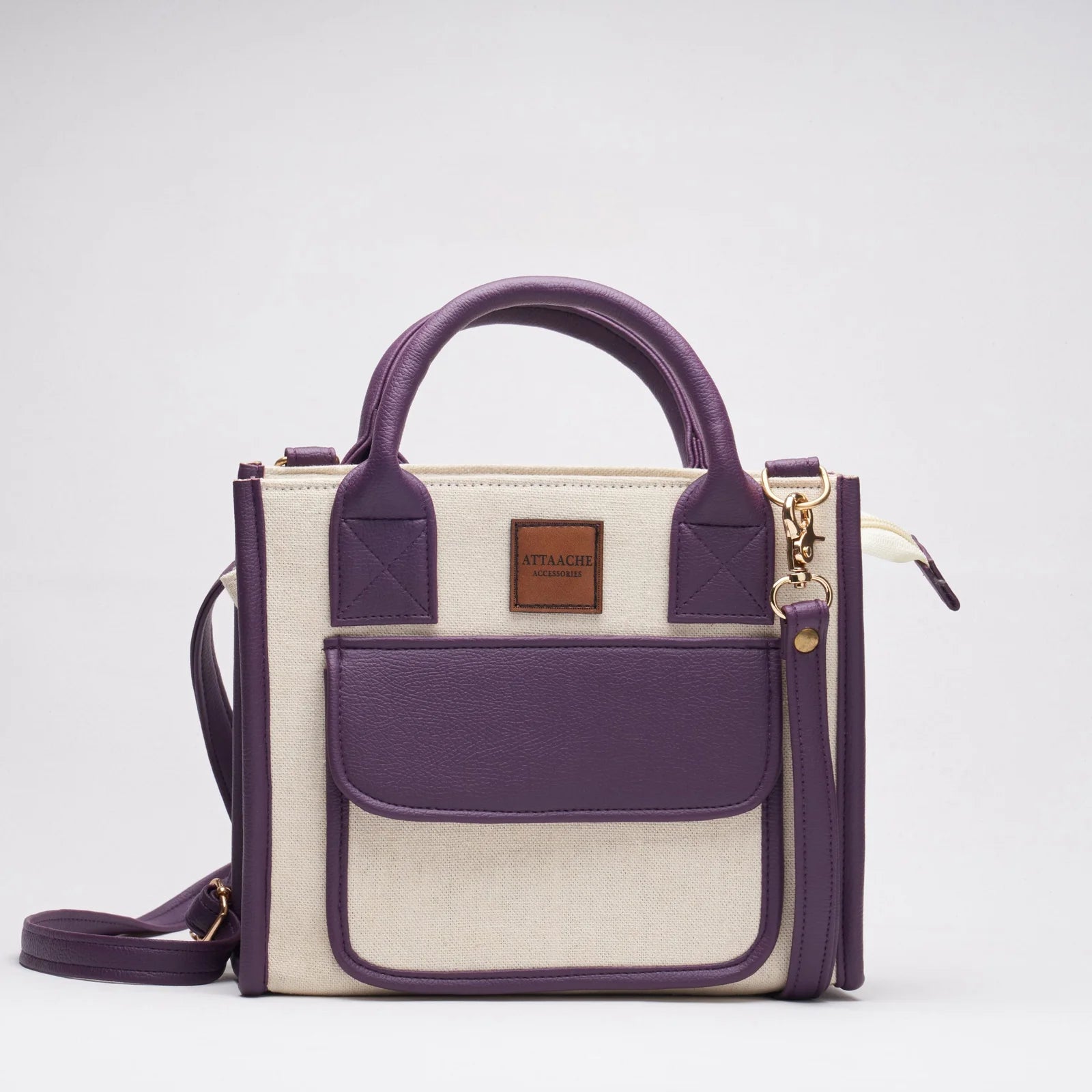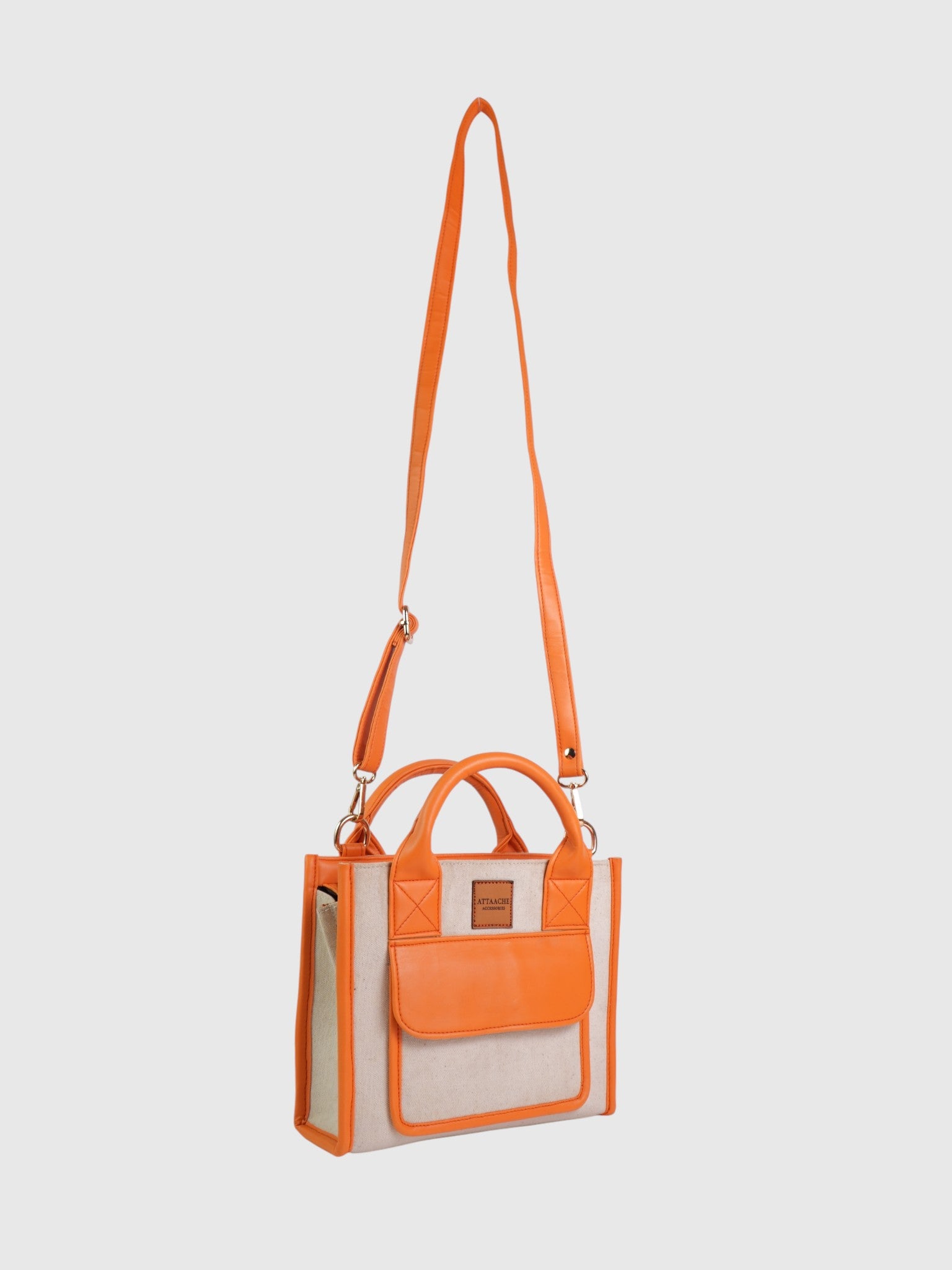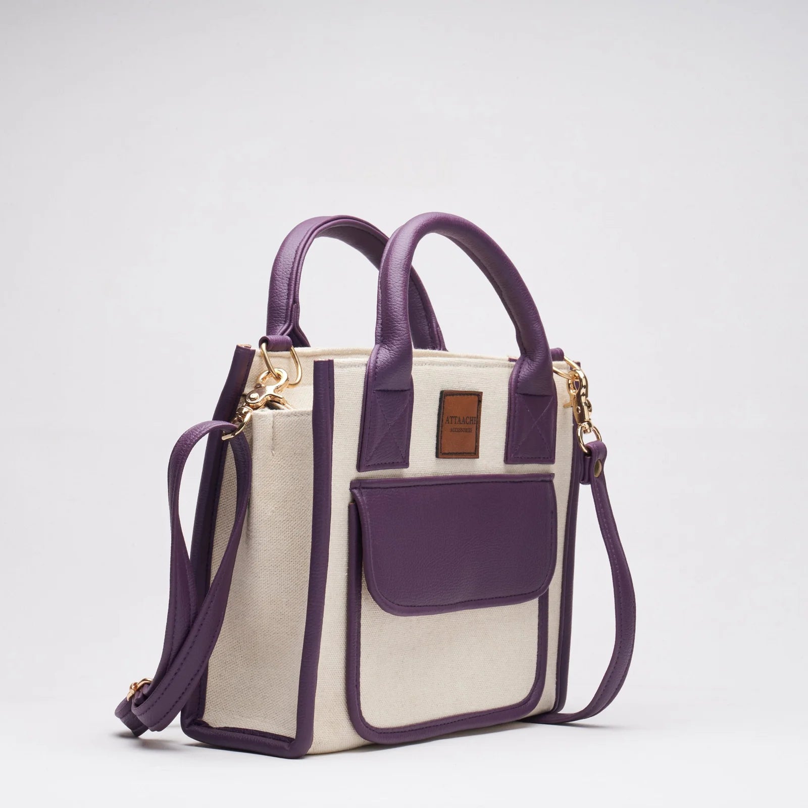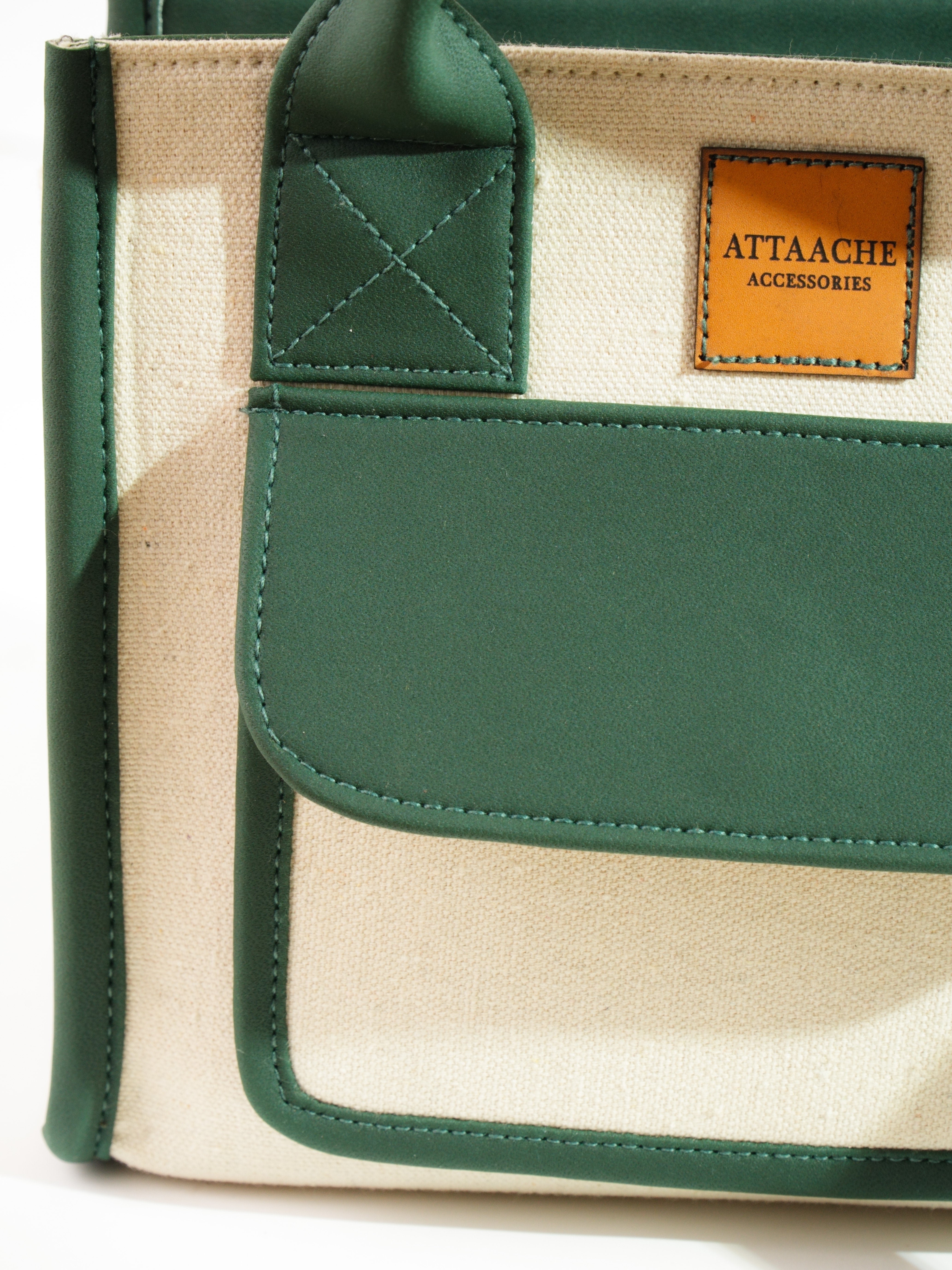 A structured everyday bag crafted with a durable canvas body and smooth vegan leather accents. Designed for functionality and clean aesthetics, it features a compact silhouette with practical pockets and versatile carry options.