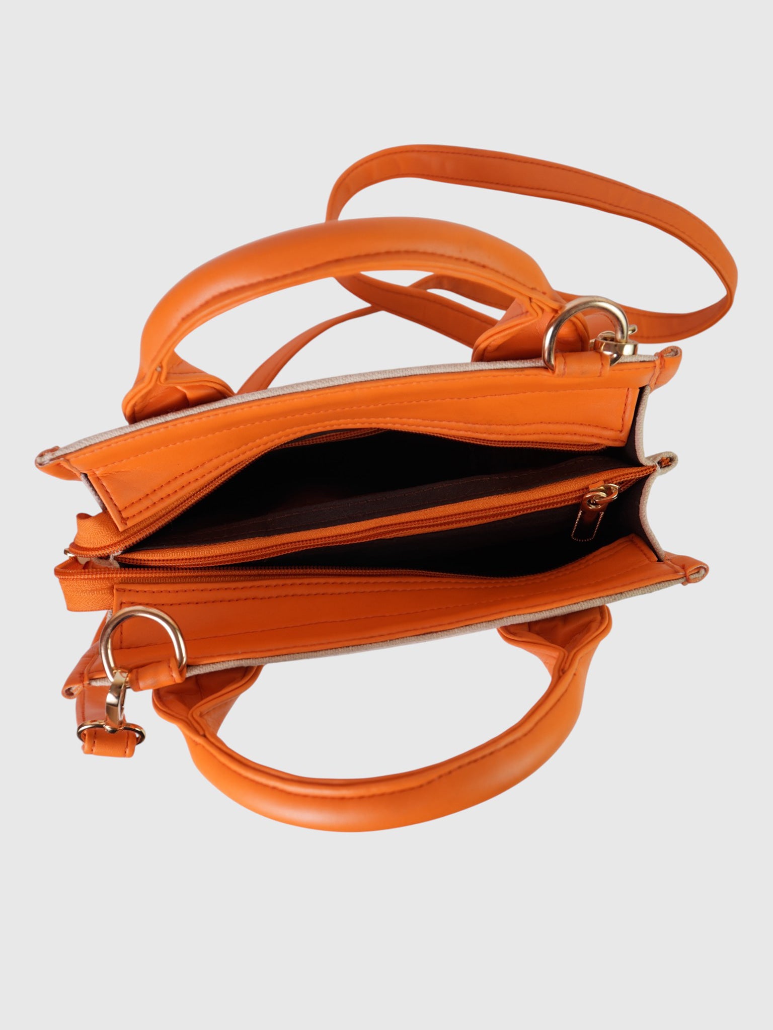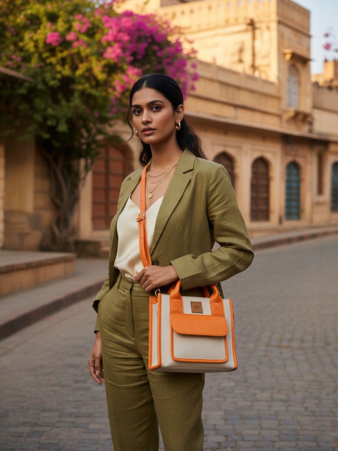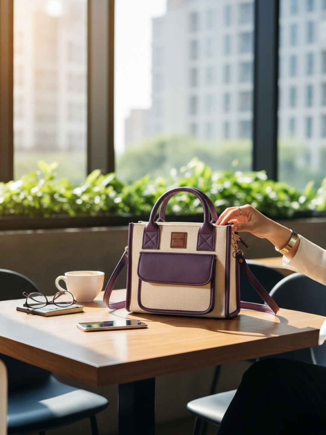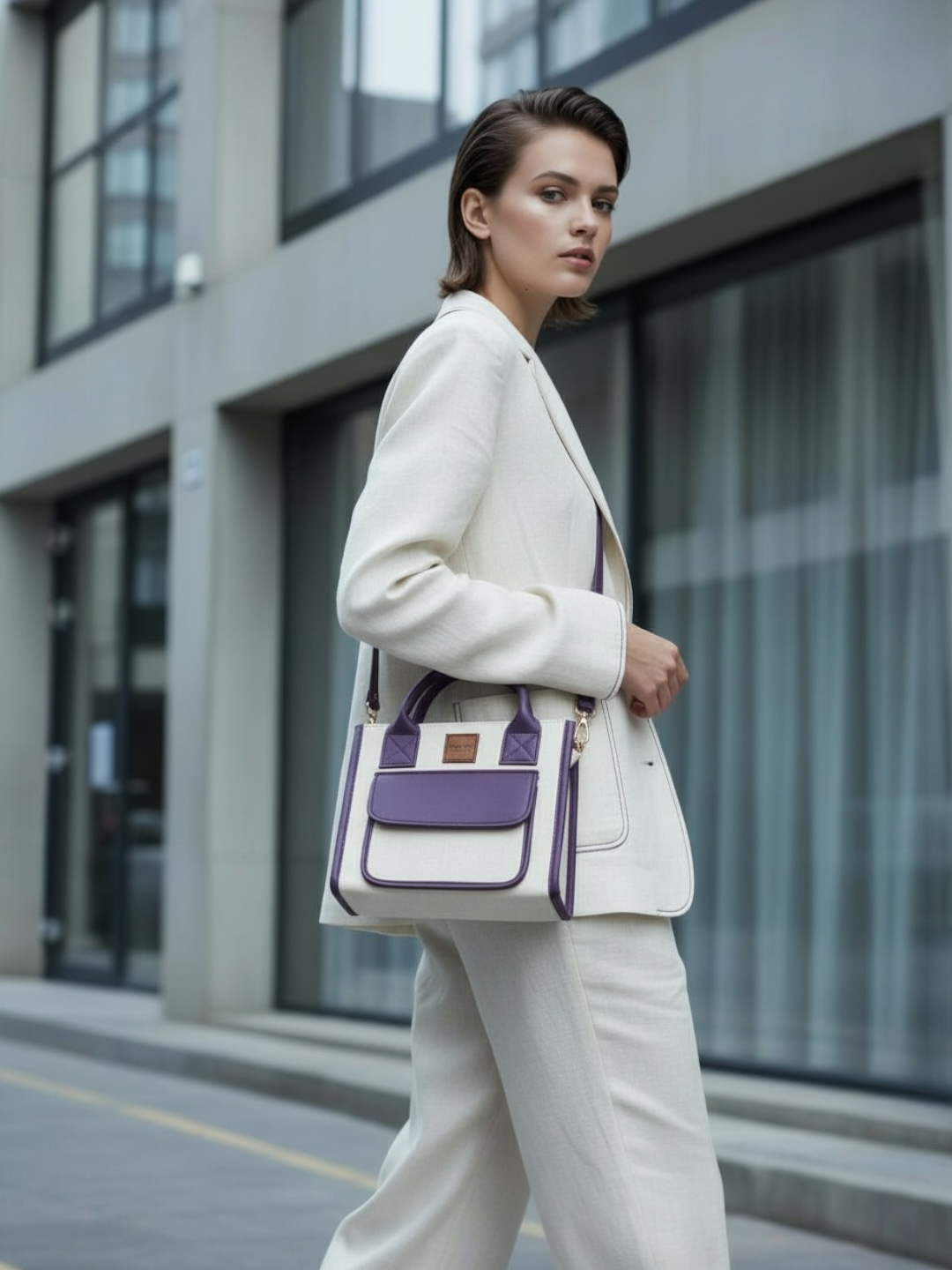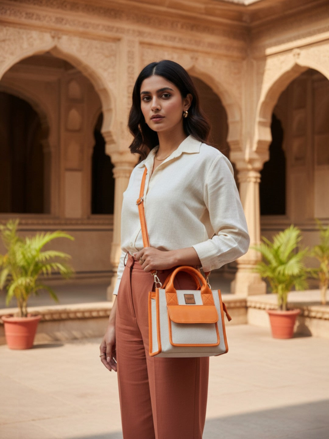 A structured everyday bag crafted with a durable canvas body and smooth vegan leather accents. Designed for functionality and clean aesthetics, it features a compact silhouette with practical pockets and versatile carry options.