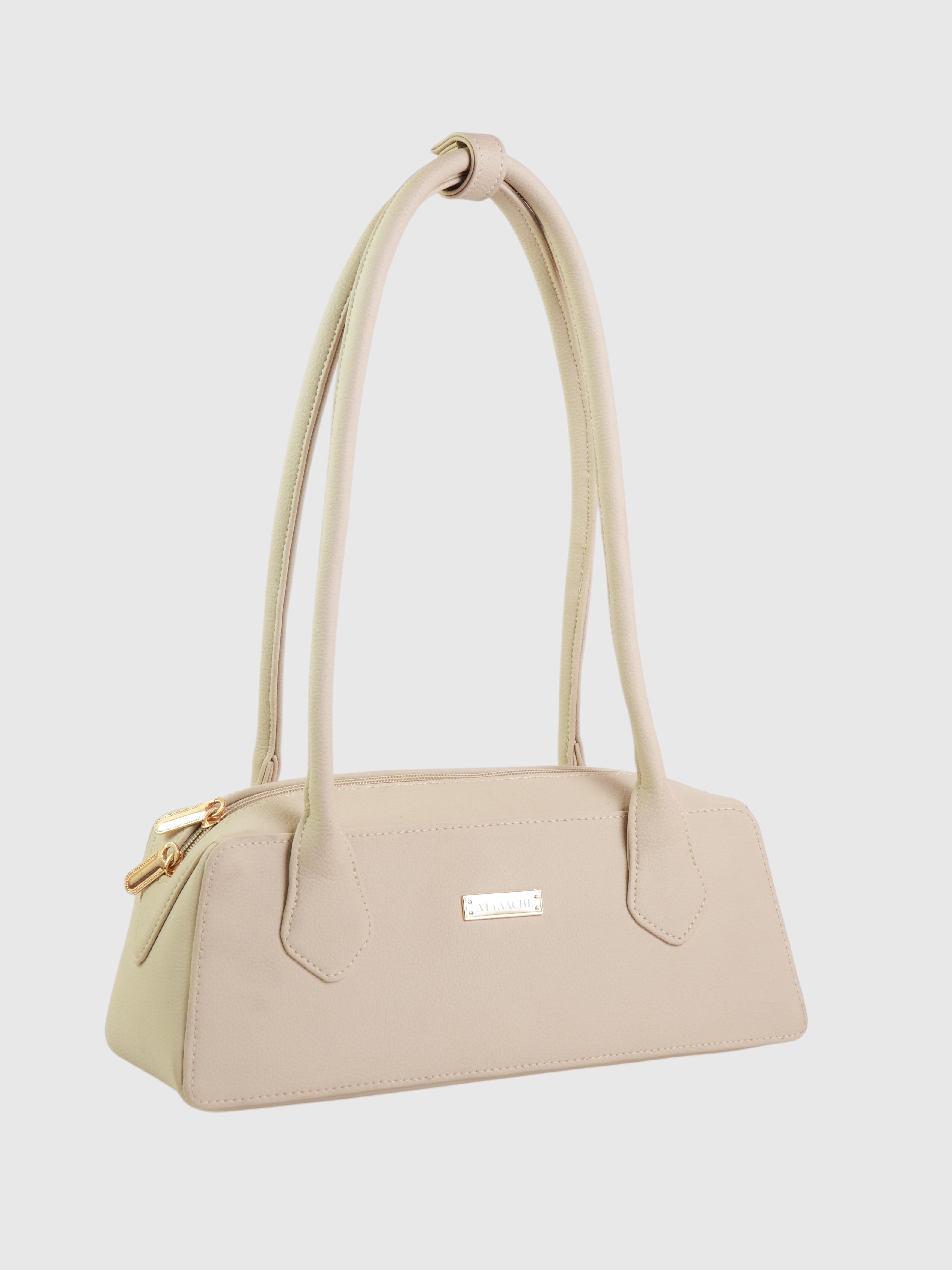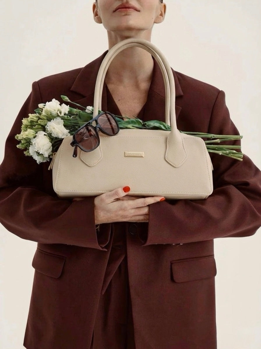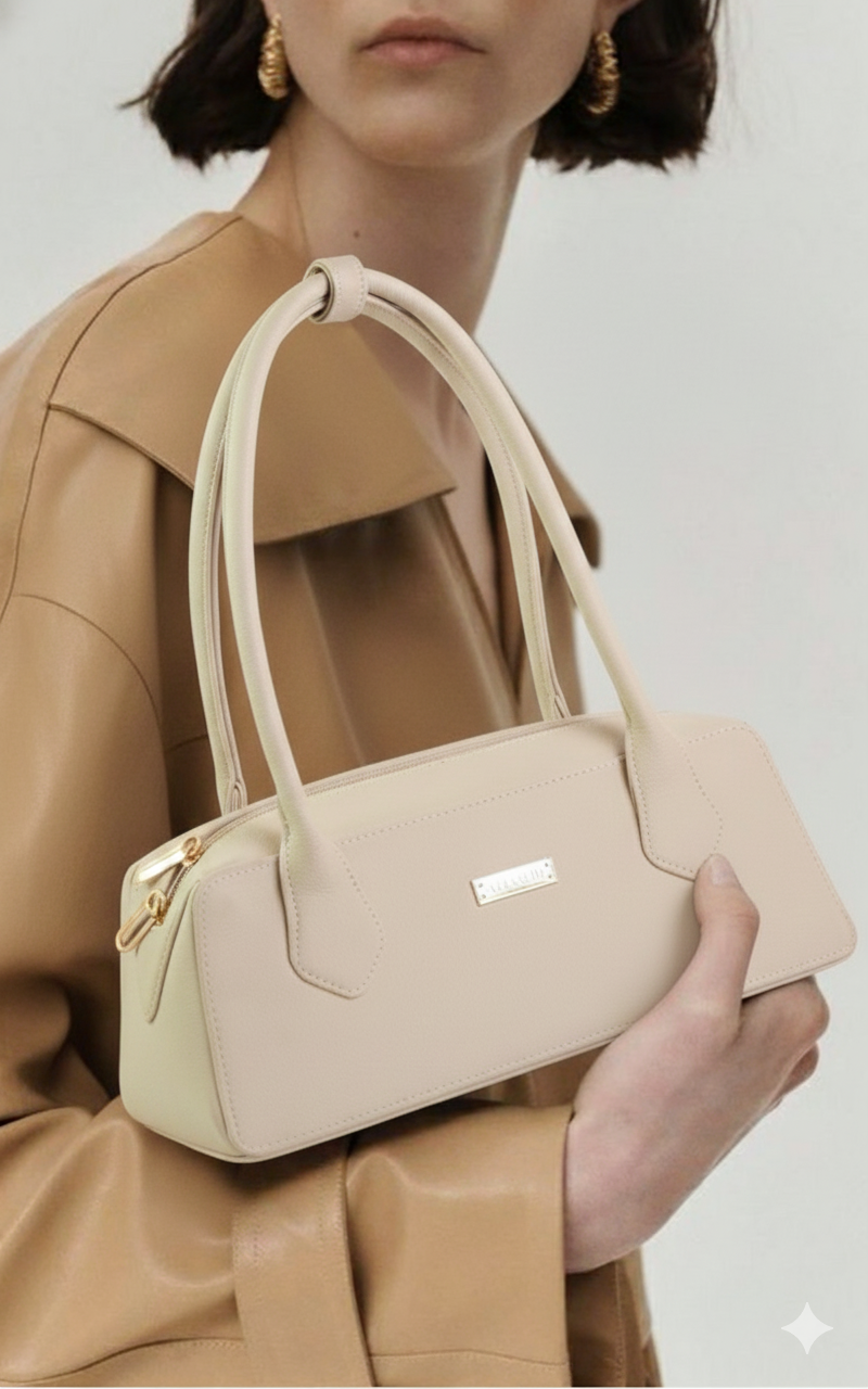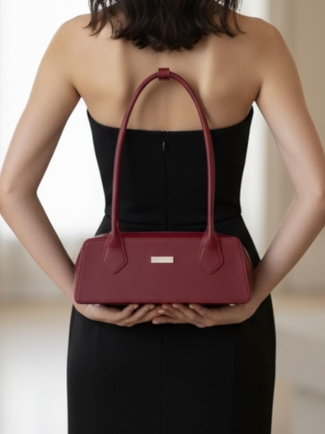 A refined baguette-shaped bag with a sleek, elongated silhouette that feels effortlessly elegant. Crafted to sit neatly under the arm, it brings a polished, timeless appeal to both day and evening looks.