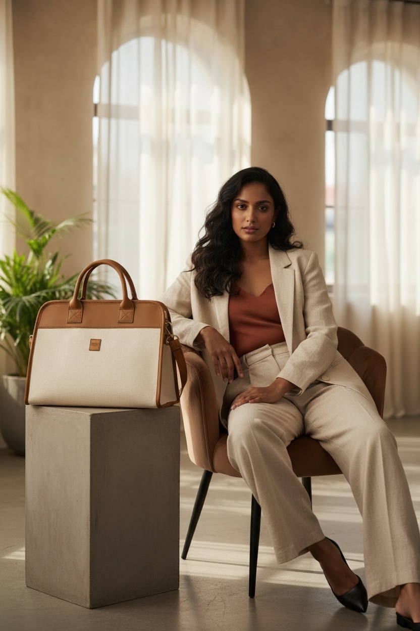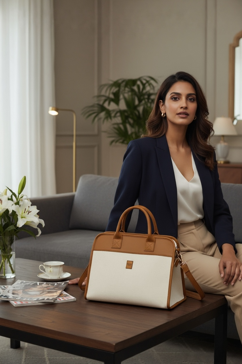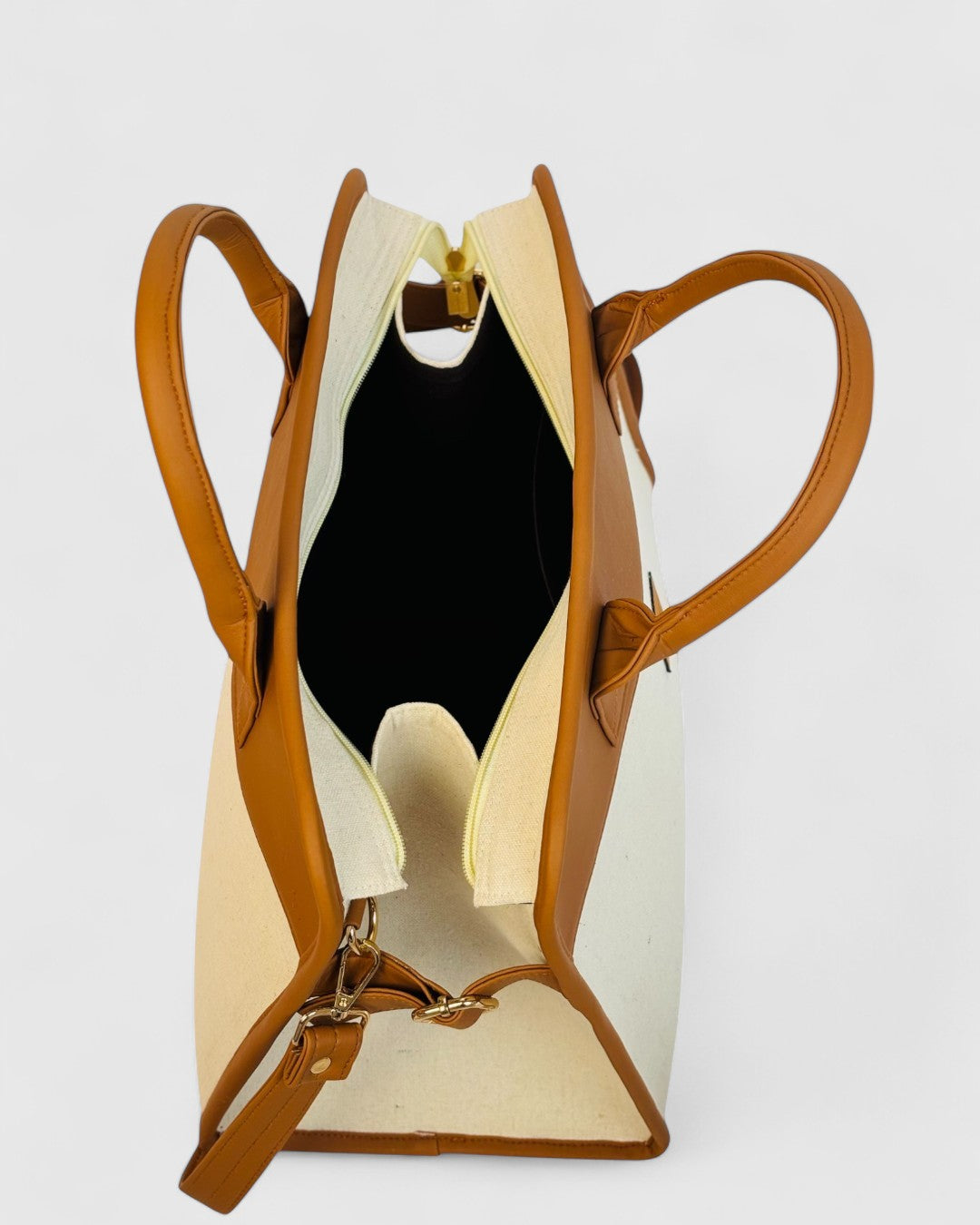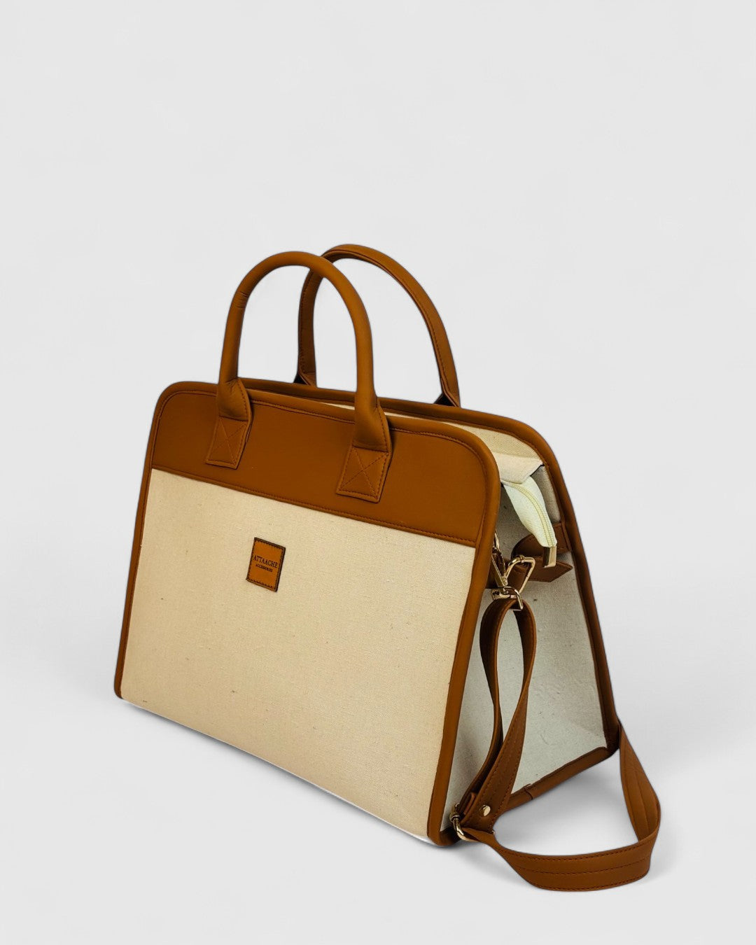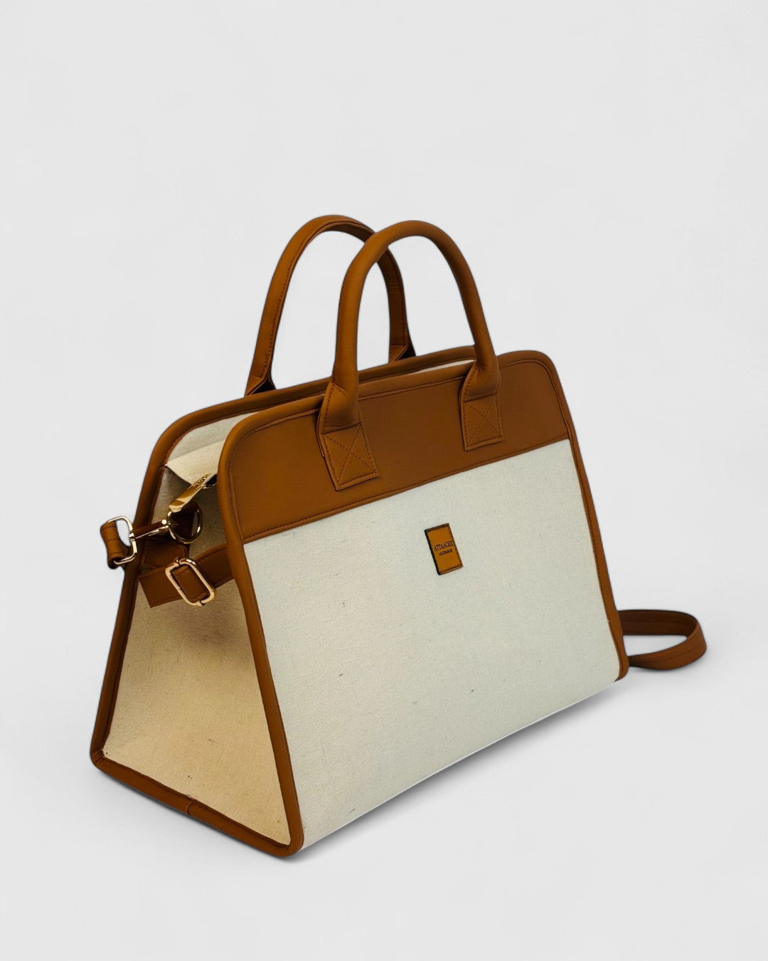 A classic structured tote with a refined trapeze silhouette, combining clean lines and warm neutrals for a timeless, polished look. Designed to hold its shape and elevate everyday essentials.