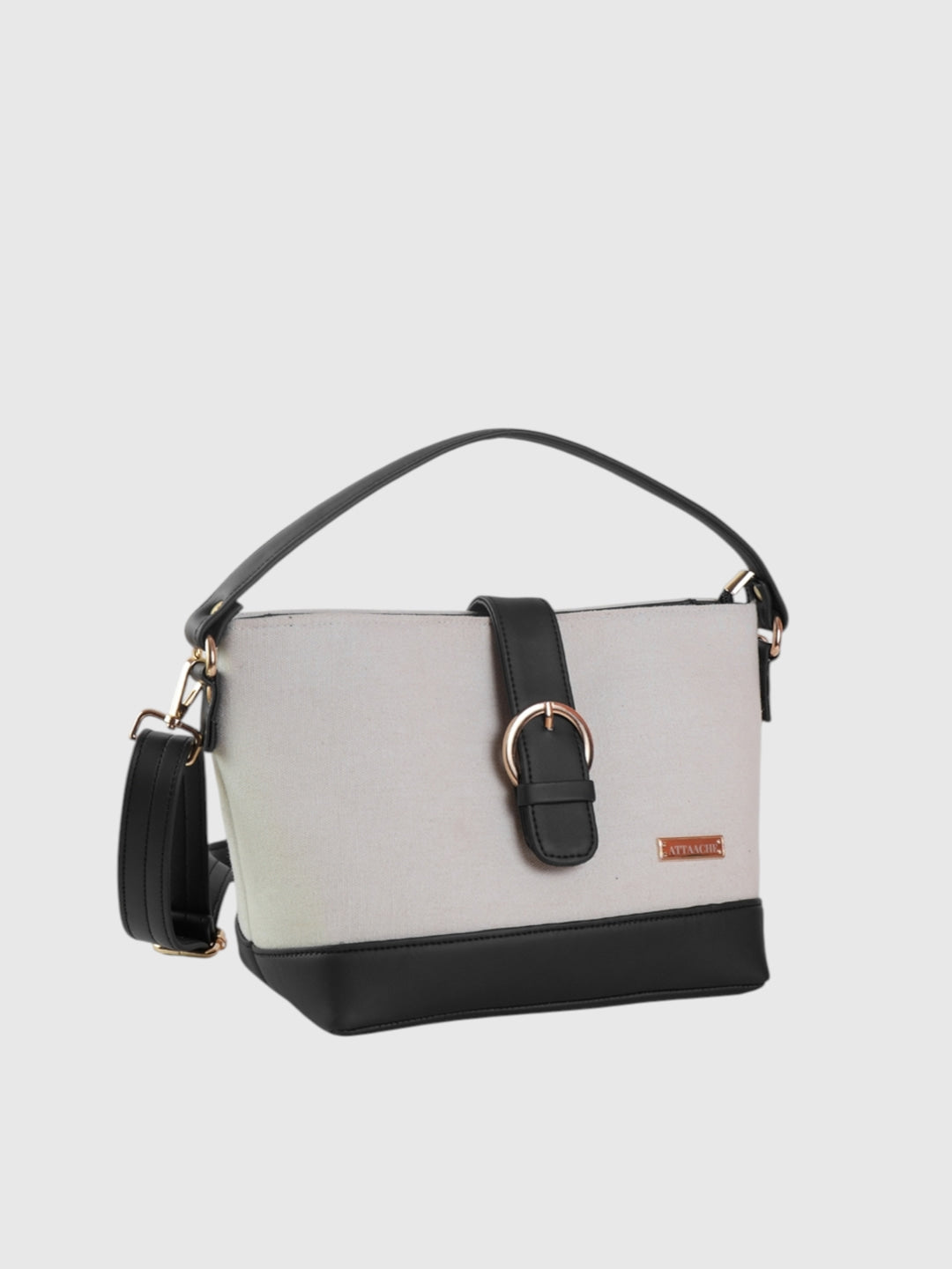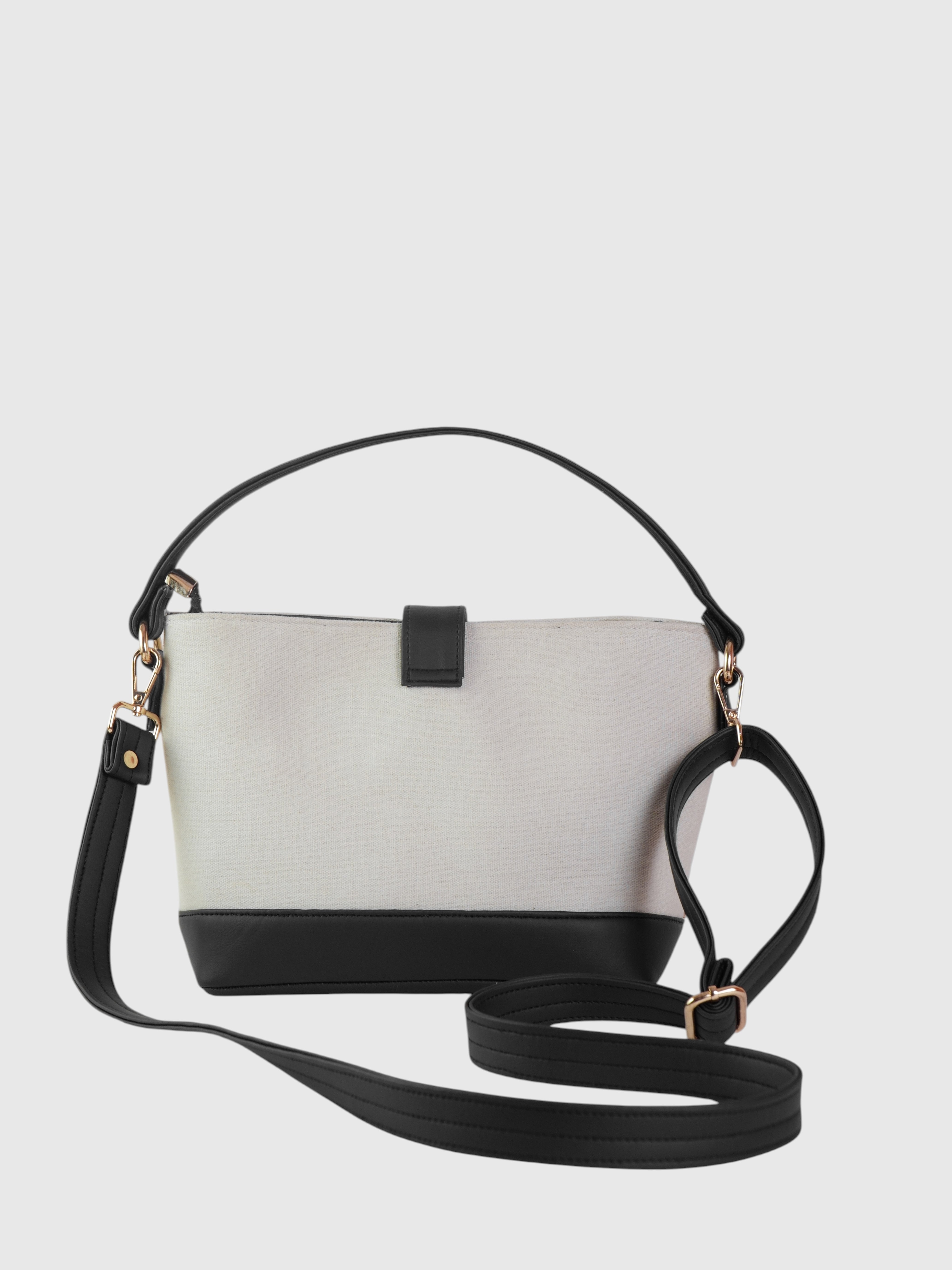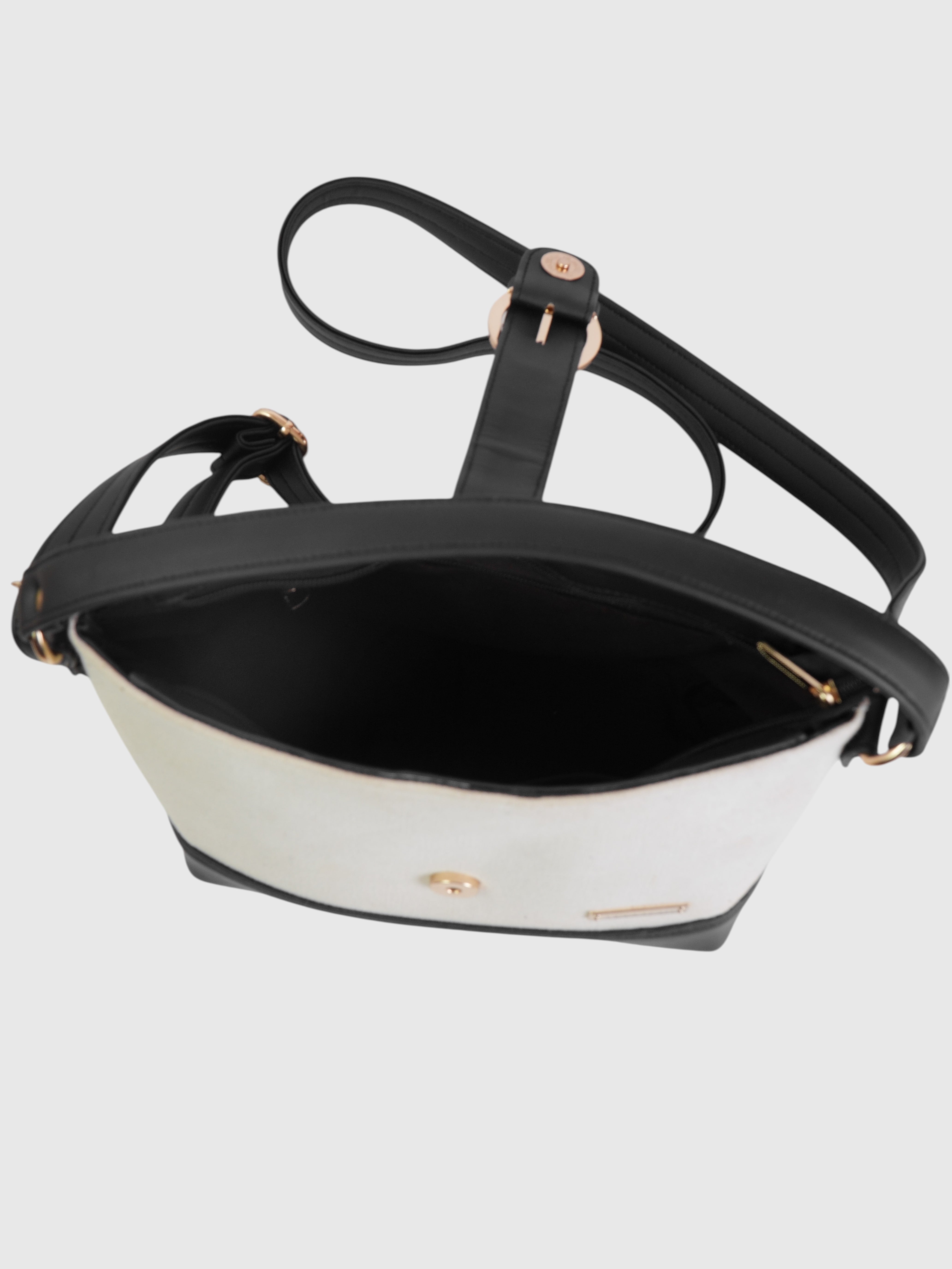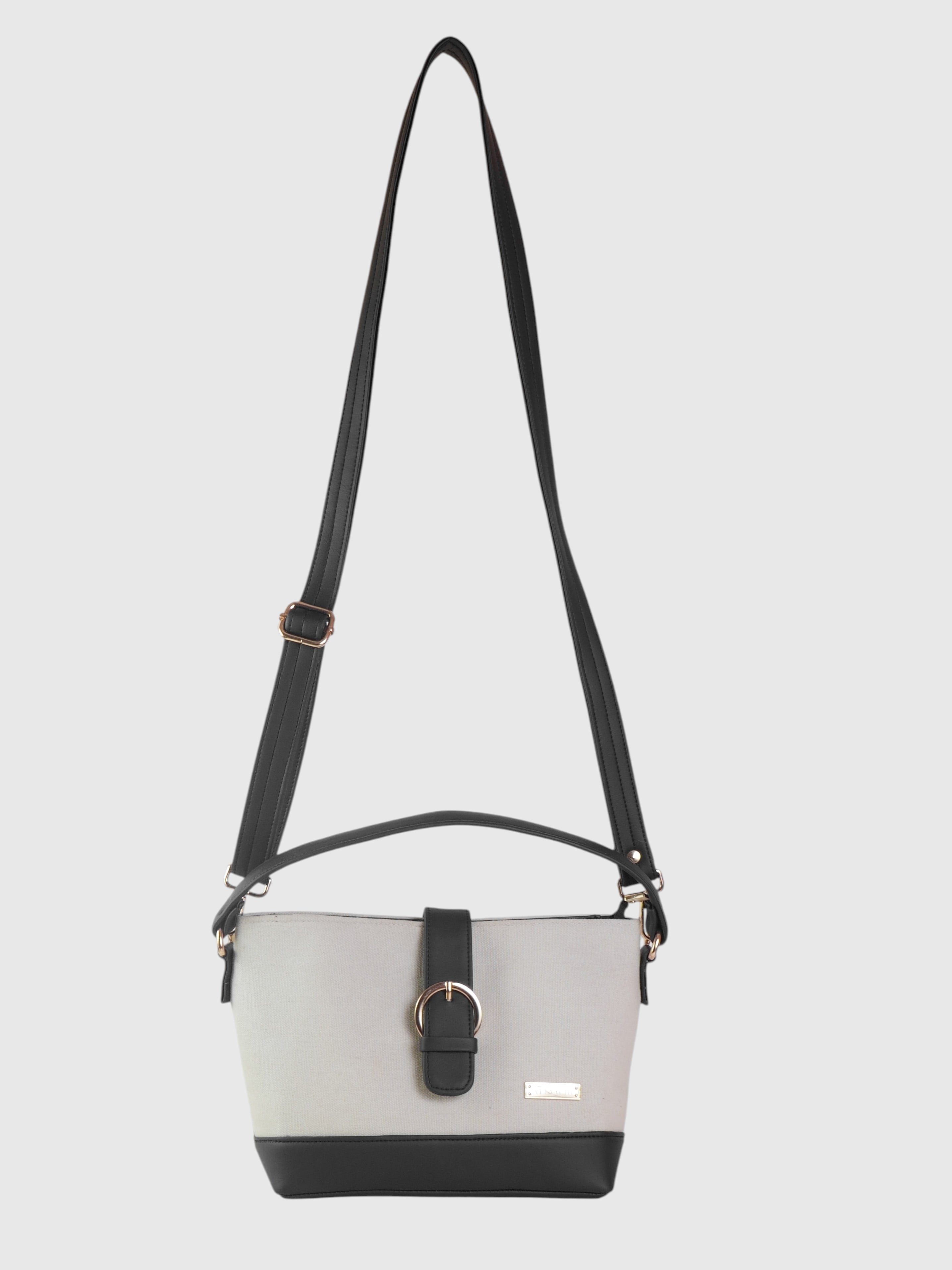 A modern boat-shaped sling designed for effortless everyday carry. Its structured silhouette, canvas body, and vegan leather accents strike the perfect balance between utility and understated elegance.