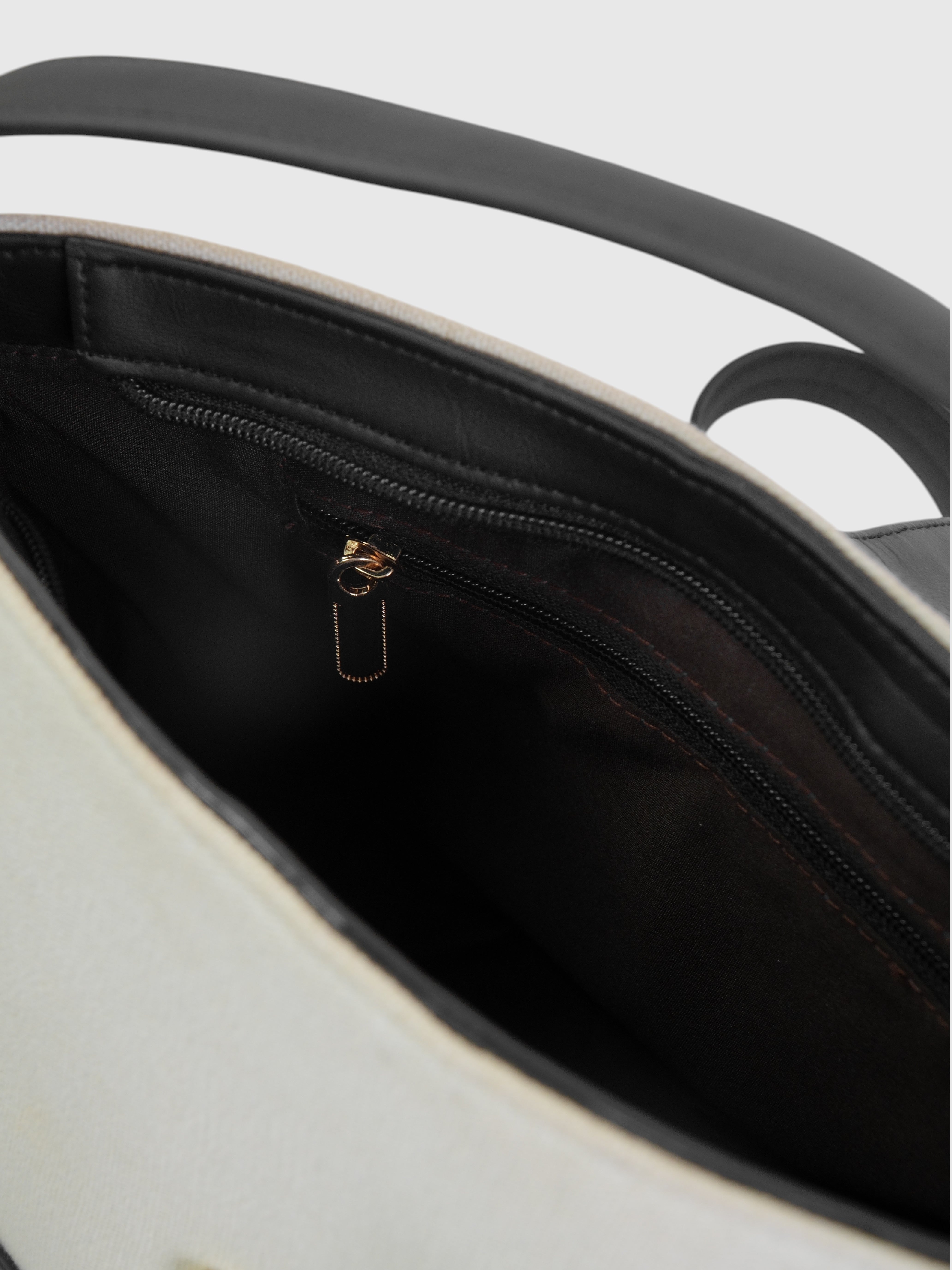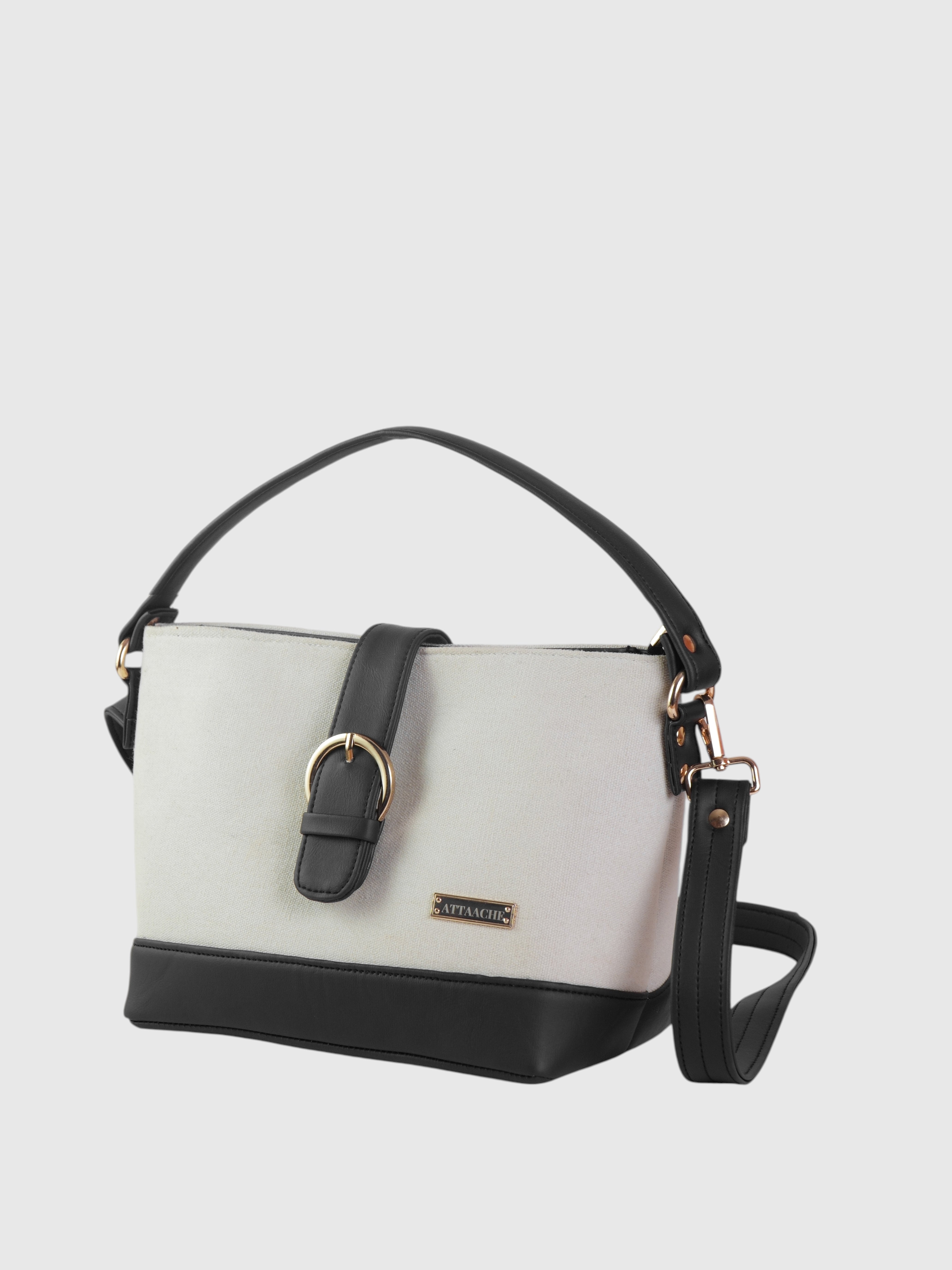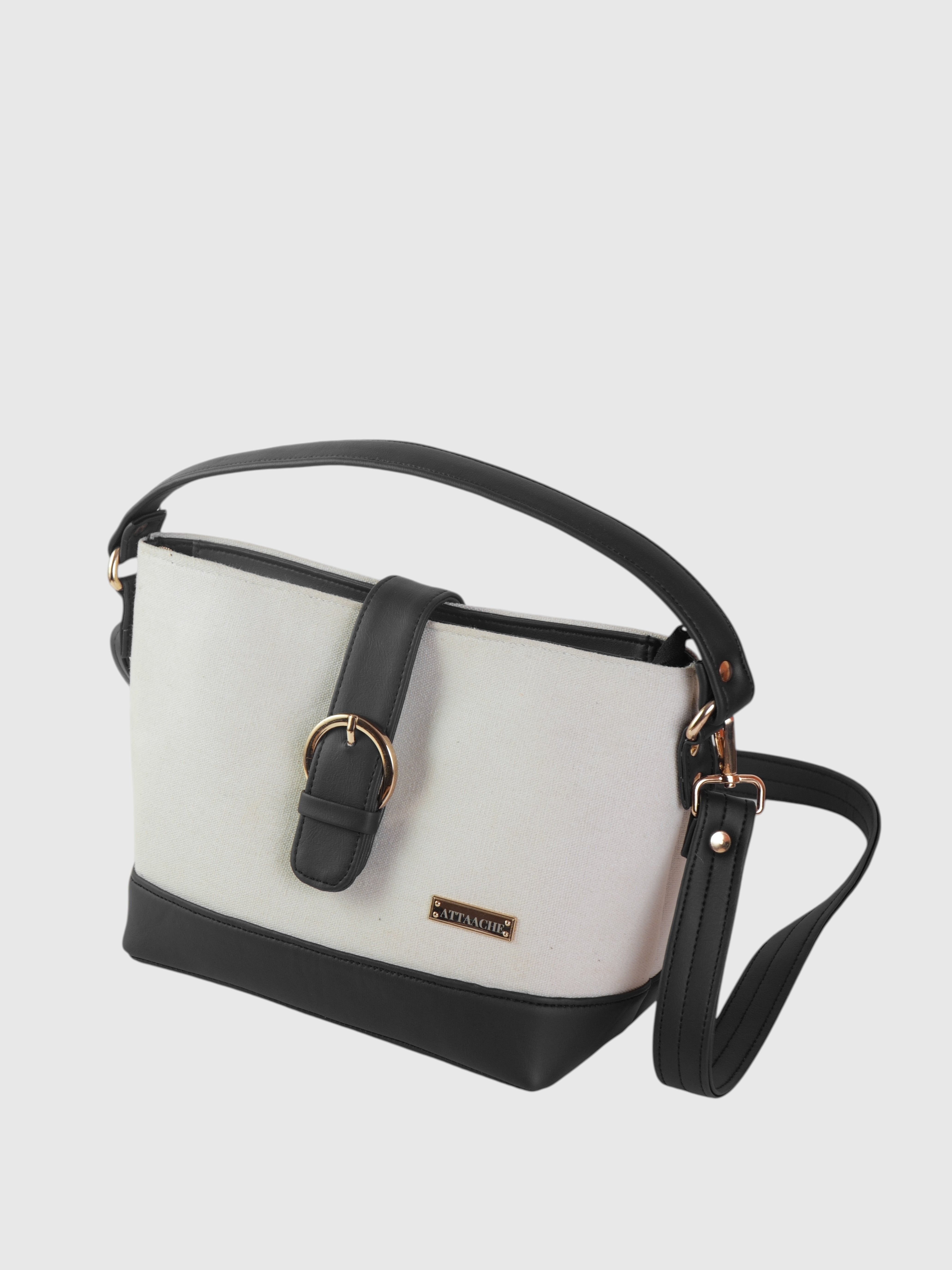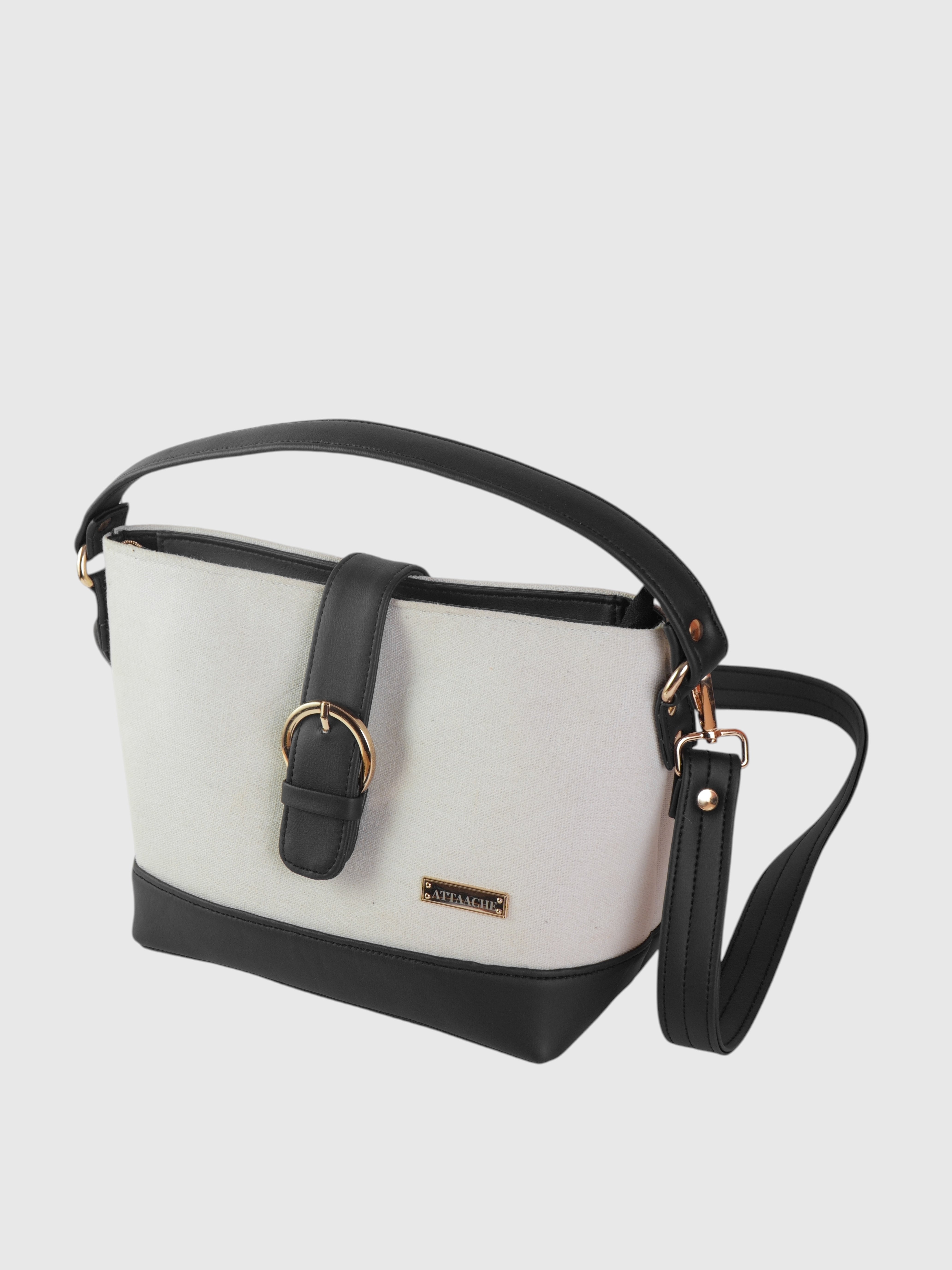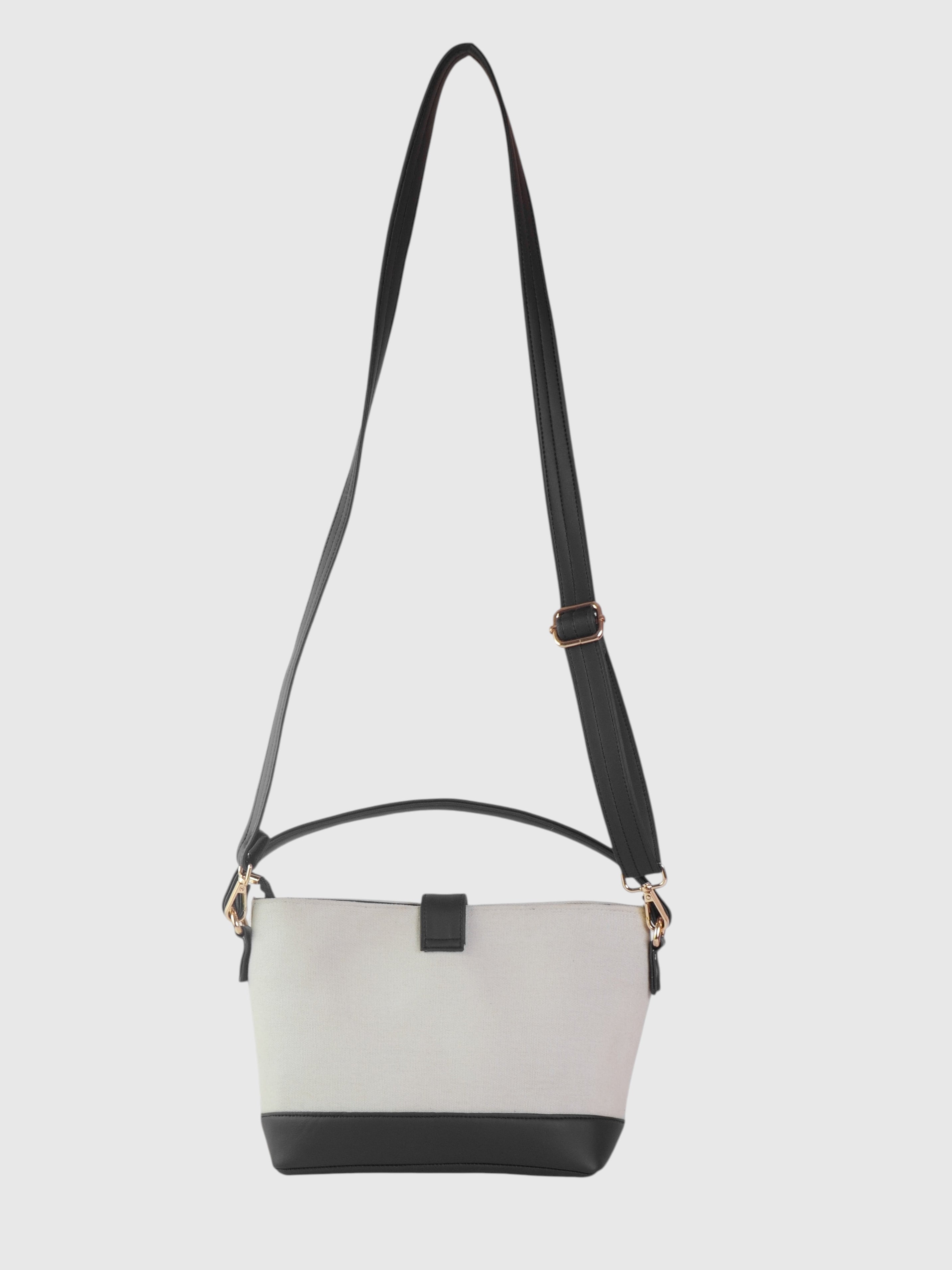 A modern boat-shaped sling designed for effortless everyday carry. Its structured silhouette, canvas body, and vegan leather accents strike the perfect balance between utility and understated elegance.